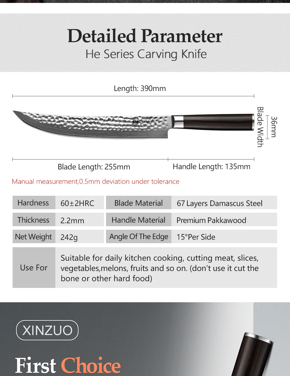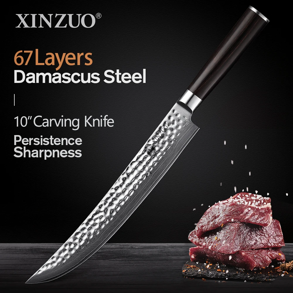 Нож для резьбы XINZUO 10 дюймов, профессиональный кухонный резец из дамасской стали, 67 слоев, ручка Pakawood