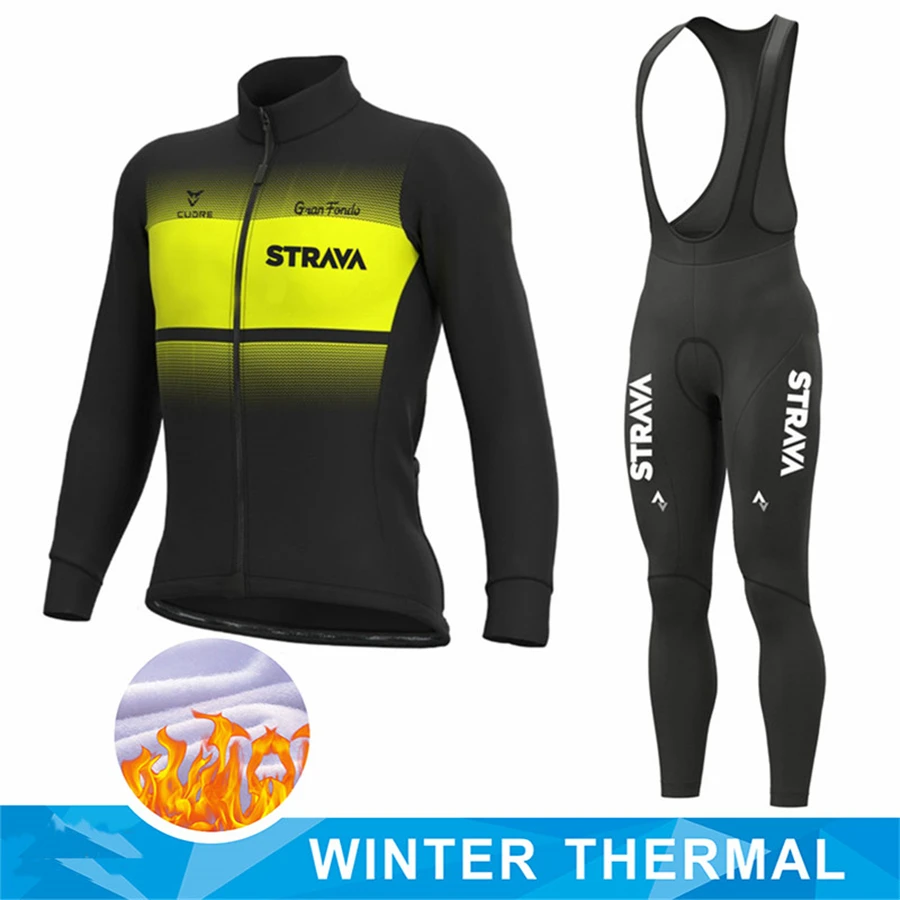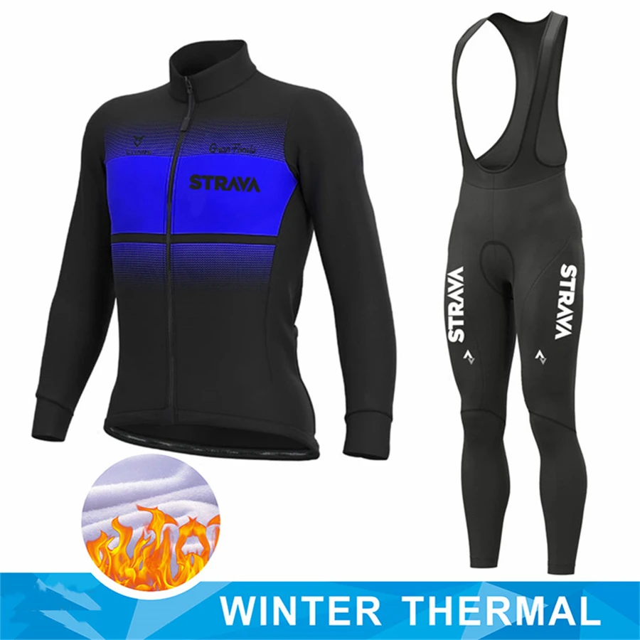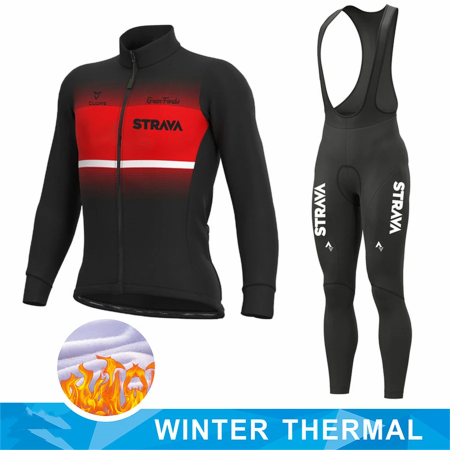 Зимний теплый флисовый трикотажный комплект для велоспорта STRAVA, ...
