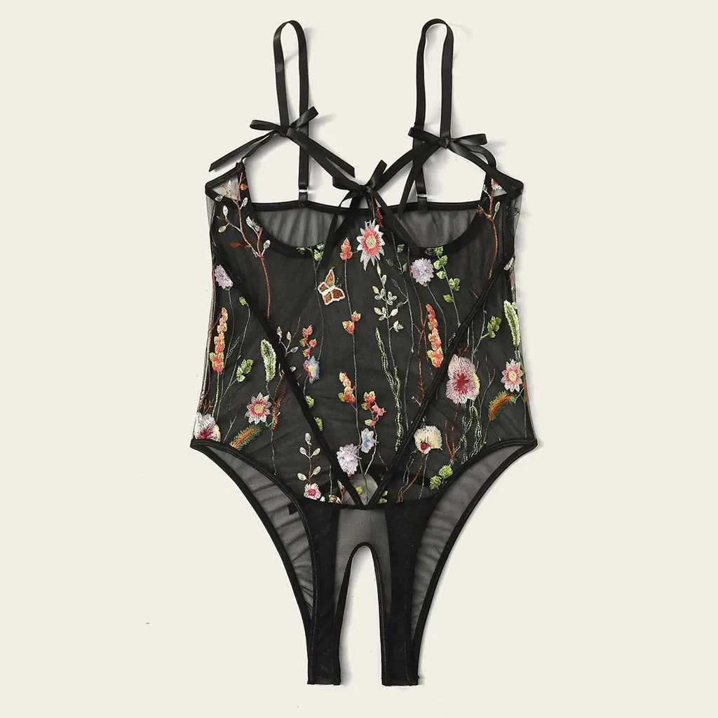 Женское Прозрачное Кружевное боди, с вышивкой и цветами, S-3XL