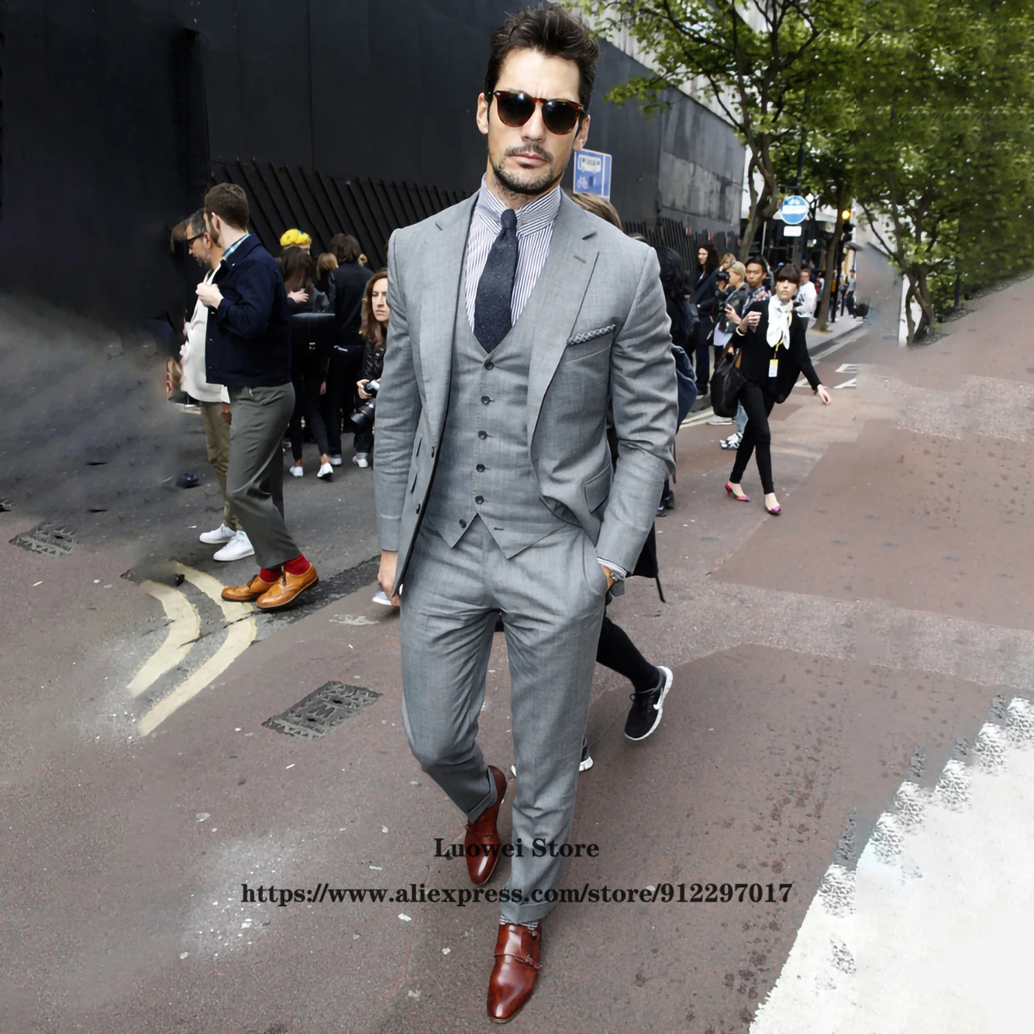 Классические Серые Мужские костюмы, облегающий Комплект из 3-х предметов, пиджак и брюки, смокинг для жениха на свадьбу, официальный профессиональный деловой блейзер для мужчин