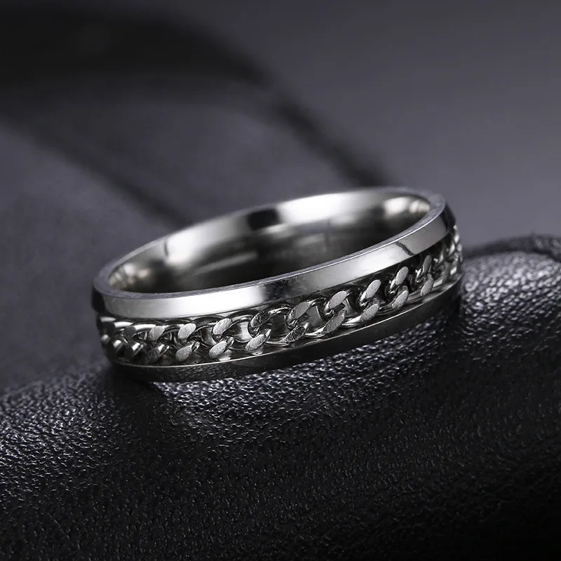 Кольцо-Спиннер для мужчин и женщин, вращающаяся цепь из нержавеющей...