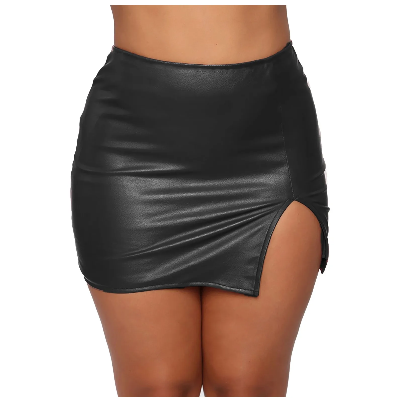 Корейская модная Мини-юбка, Женская Повседневная облегающая открытая юбка из искусственной кожи, обтягивающая кожаная юбка с молнией на бедрах