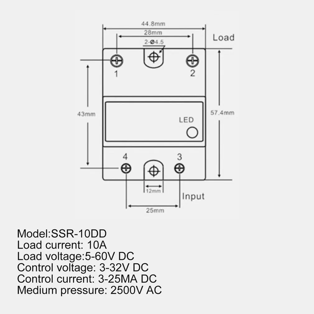 Твердотельное модульное реле DC-DC Однофазное SSR 60A 80A 100A ток 3-32V 5V 12V DC to 5-60V DC нагрузка без крышки