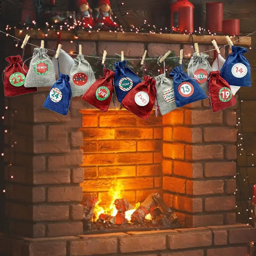 24 шт., мешки с календарём на шнурке, с клипсами