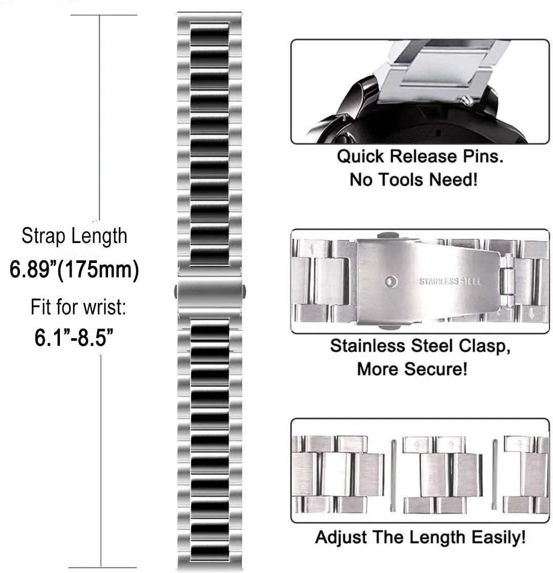 1. Модель: ремешок для смарт-часов Maimo2. Материал: изготовлен из высококачественной нержавеющей стали 316.Прочный, устойчивый к царапинам, водонепроницаемый и устойчивый к коррозии.3. Дизайн: дизайн вдохновлен бантом, простой и стильный. Сделайте ремешок для ваших часов более легким для того чтобы снять и пристегнуть вверх более безопасно.4. Размеры: Размеры ремешка, который подходит для запястья 5,5 "-8,3". Каждая пряжка может быть разобрана по желанию, вы можете найти размер, который подходит для вашего запястья.Посылка включает в себя:1 металлический ремешок для часов (не включая часы)2x булавки1x инструмент регулировки (бесплатный подарок не поддерживает послепродажное обслуживание)