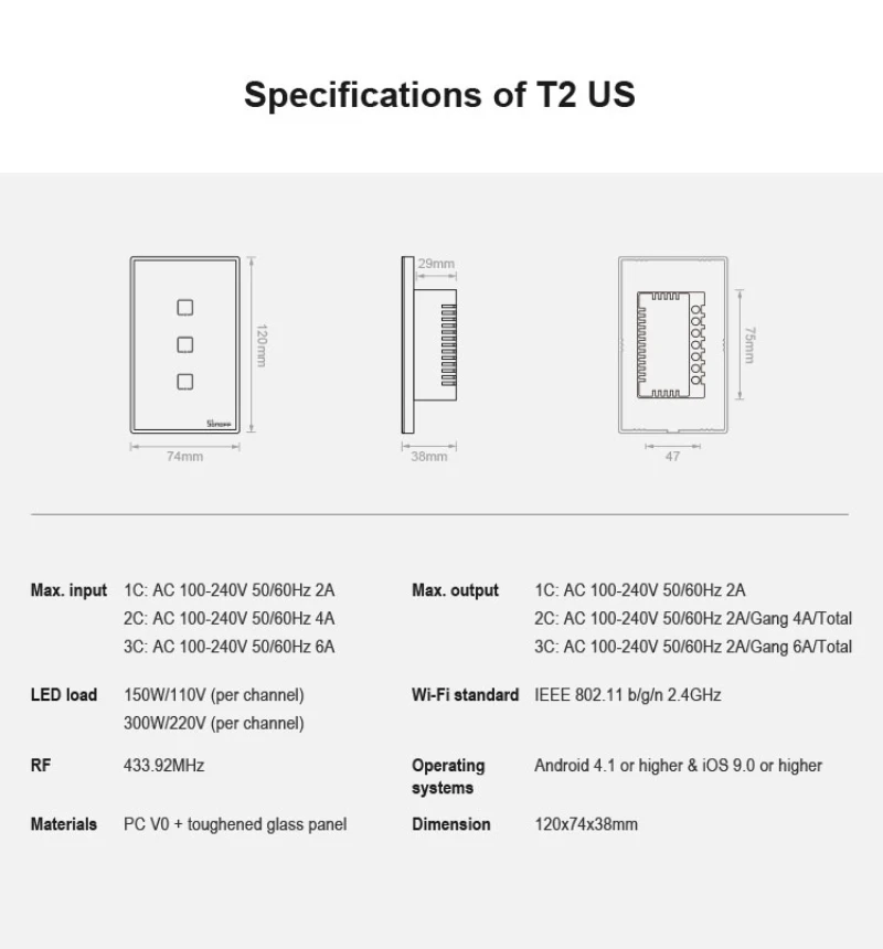 Смарт-переключатели WiFi с 1 бандой разделены на T0 / T1 / T2 / T3 (ЕС, Великобритания и США),