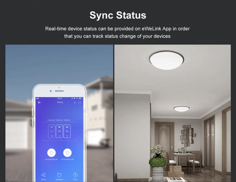 Совместим с функцией IFTTT, переключатели могут взаимодействовать с множеством устройств и услуг, чтобы включить или выключить их. Есть несколько сложных шагов, когда мы начинаем получать доступ к умному дому, для сопряжения, введите учетную запись и пароль, имя и так далее. Управление share обеспечивает быстрый способ, позволяющий вам и вашей семье управлять устройствами вместе. Вы не уверены, выключаете ли нагреватель, когда выходите из дома, Просто вытащите свой телефон и откройте приложение eWeLink, чтобы проверить состояние устройства в режиме реального времени.