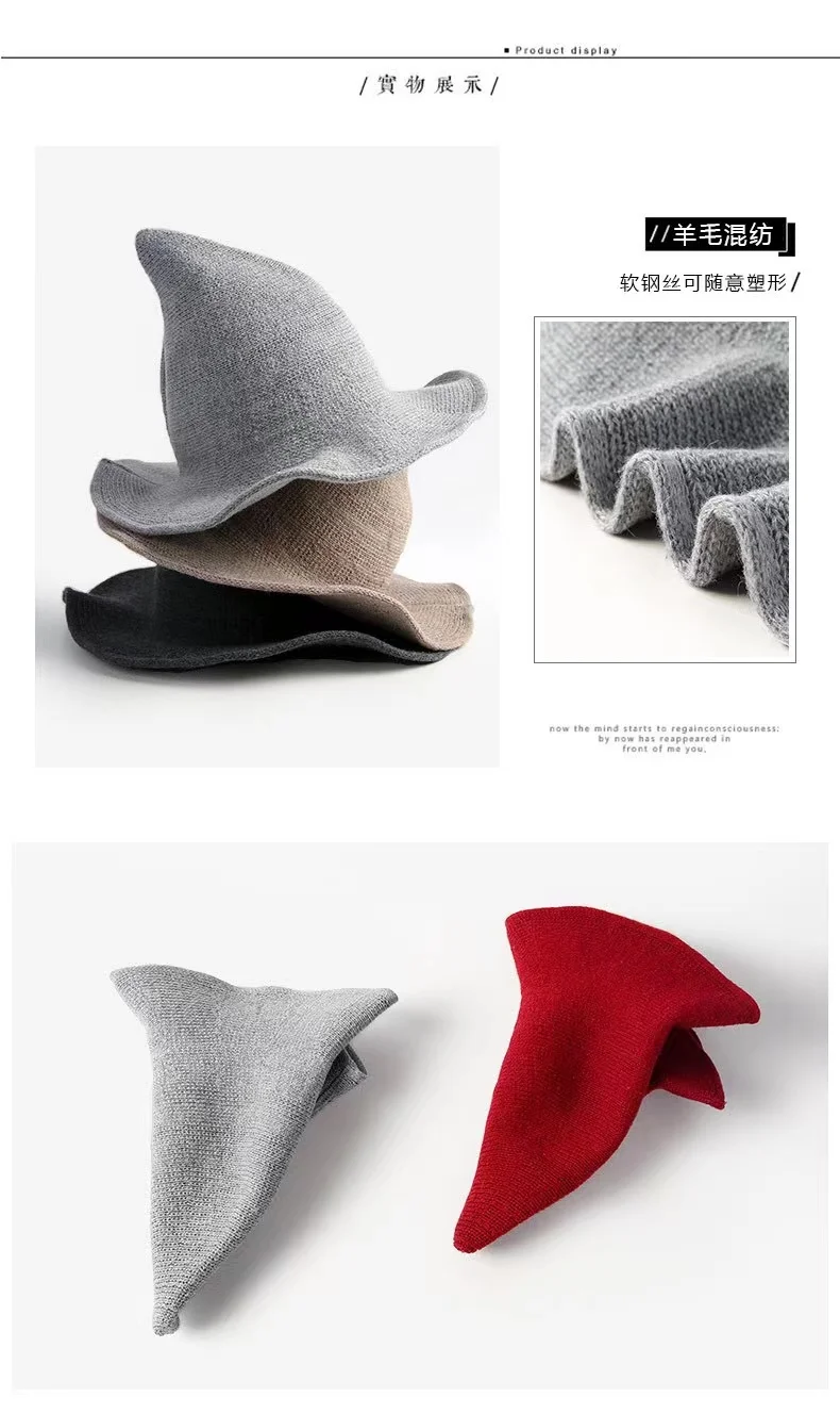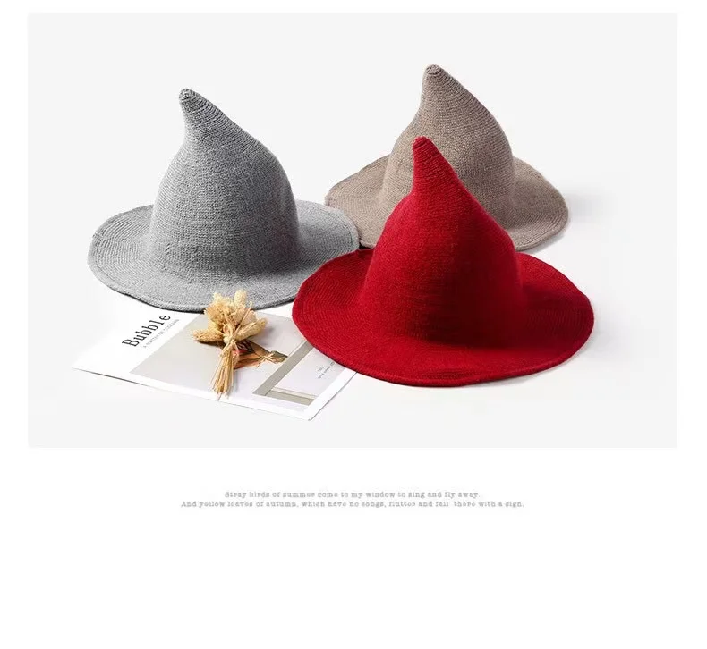 Шляпа ведьмы для мужчин и женщин, Шерстяная трикотажная шапка, модн...