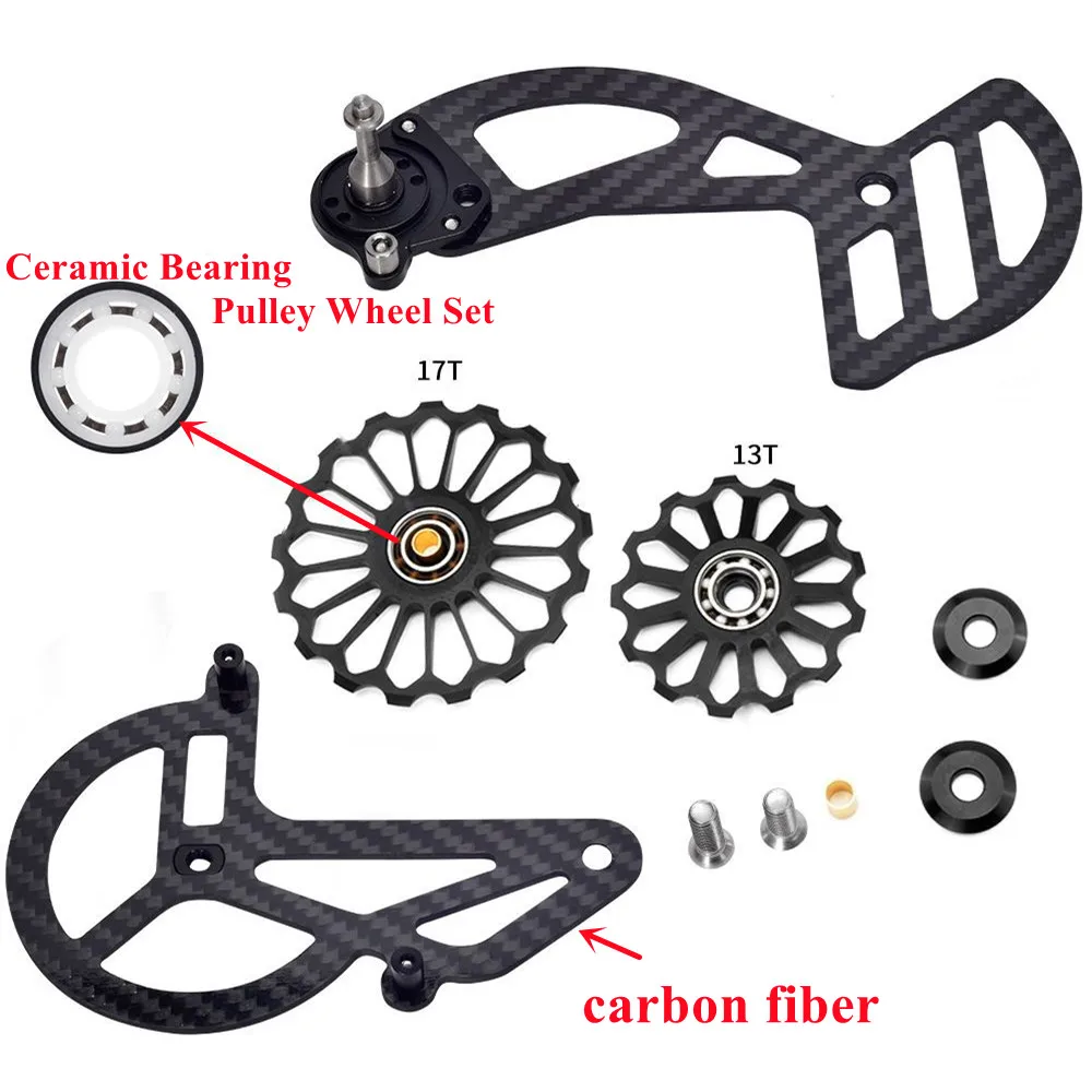 Задний переключатель передач 13T 17T для велосипеда, керамический, углеродное волокно, направляющее колесо для Shimano 6800 R7000 R8000 R9000, велосипедные аксессуары