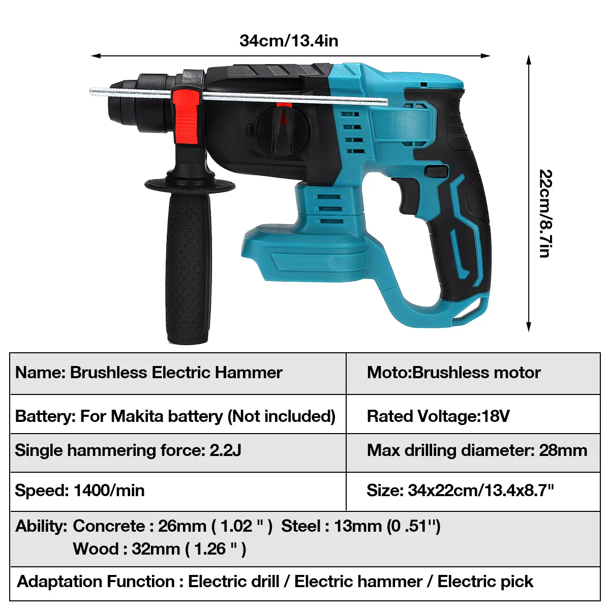 1 x электрический молоток (батарея и аксессуары не включены)