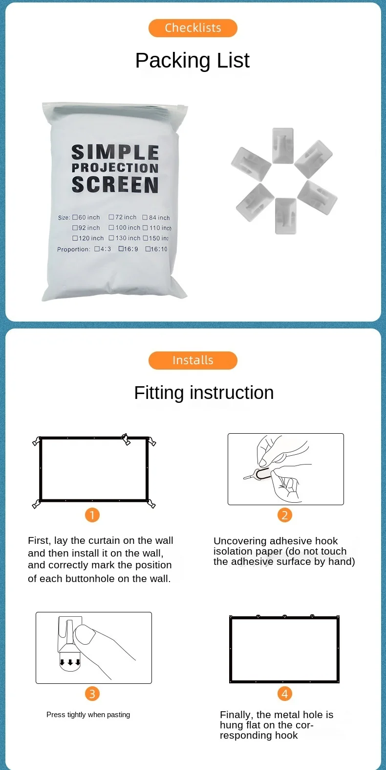 Простая занавеска для проектора в масштабе 16:9, 60, 72, 84, 100, 1...