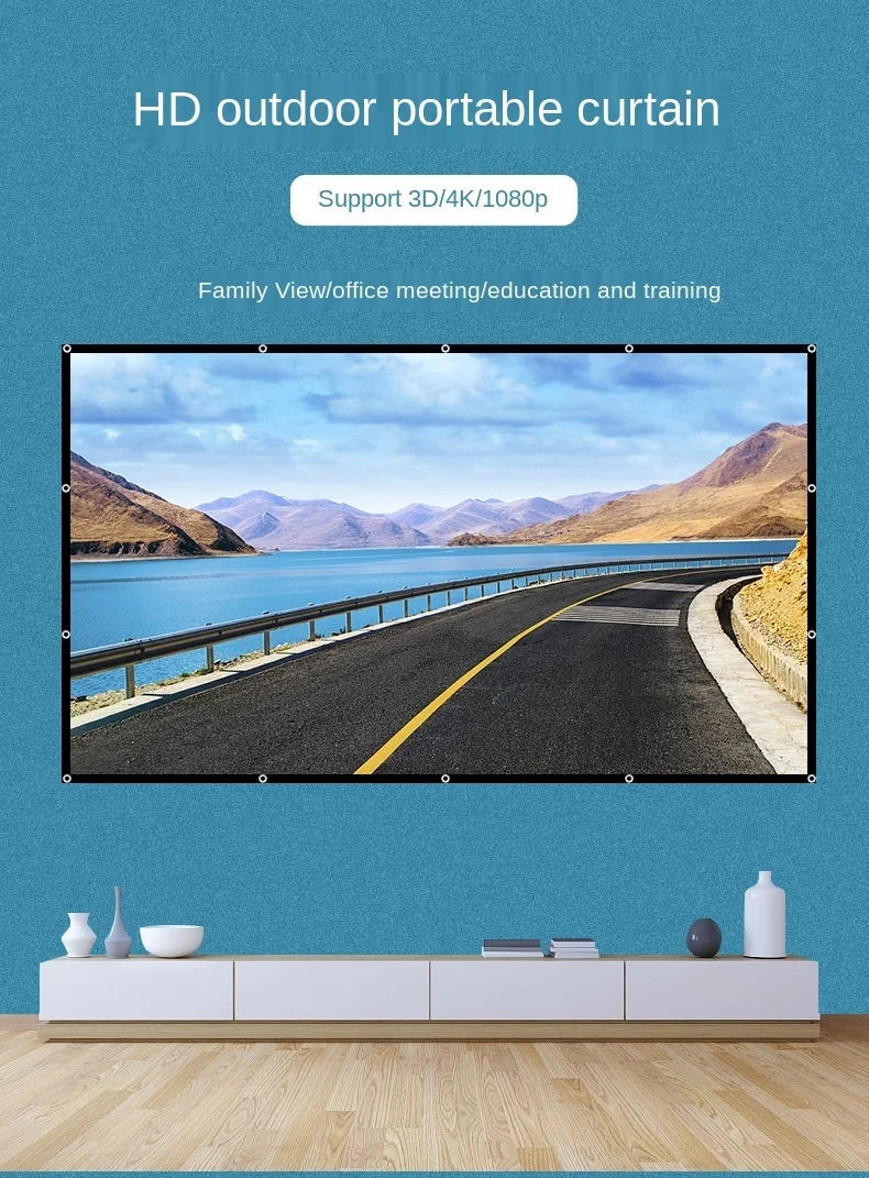 Простая портативная занавеска для проектора 16:9, 60 72 84 100 120 ...
