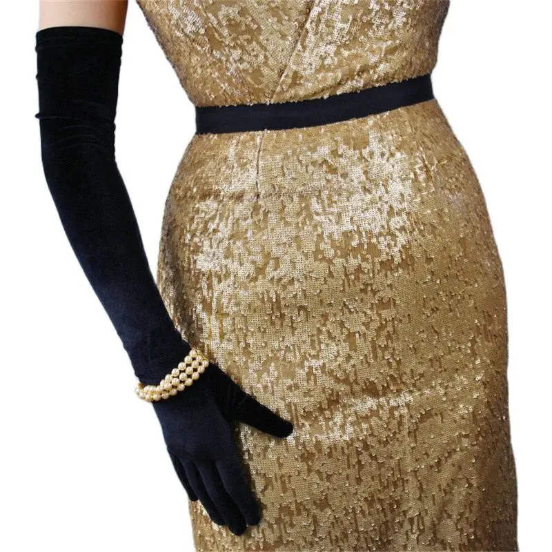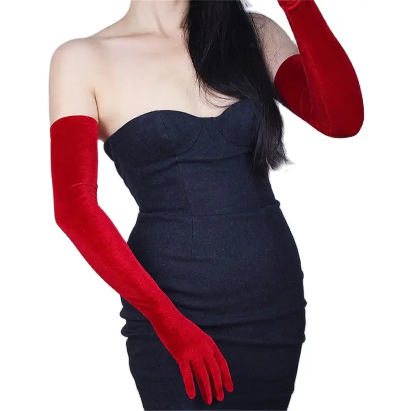 Женские велюровые перчатки, винно-красные очень длинные эластичные перчатки 60 см с лебедем и бархатным покрытием, для сенсорного экрана, WSR03
