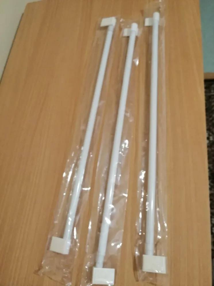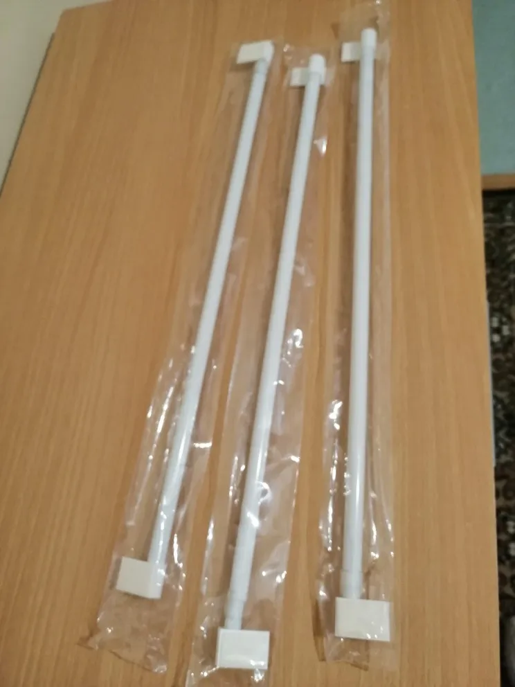 В целом держатся с легкой занавеской. Второй раз уже не приклеить. Раздвижная трубка железная, но не цельная, расходится.