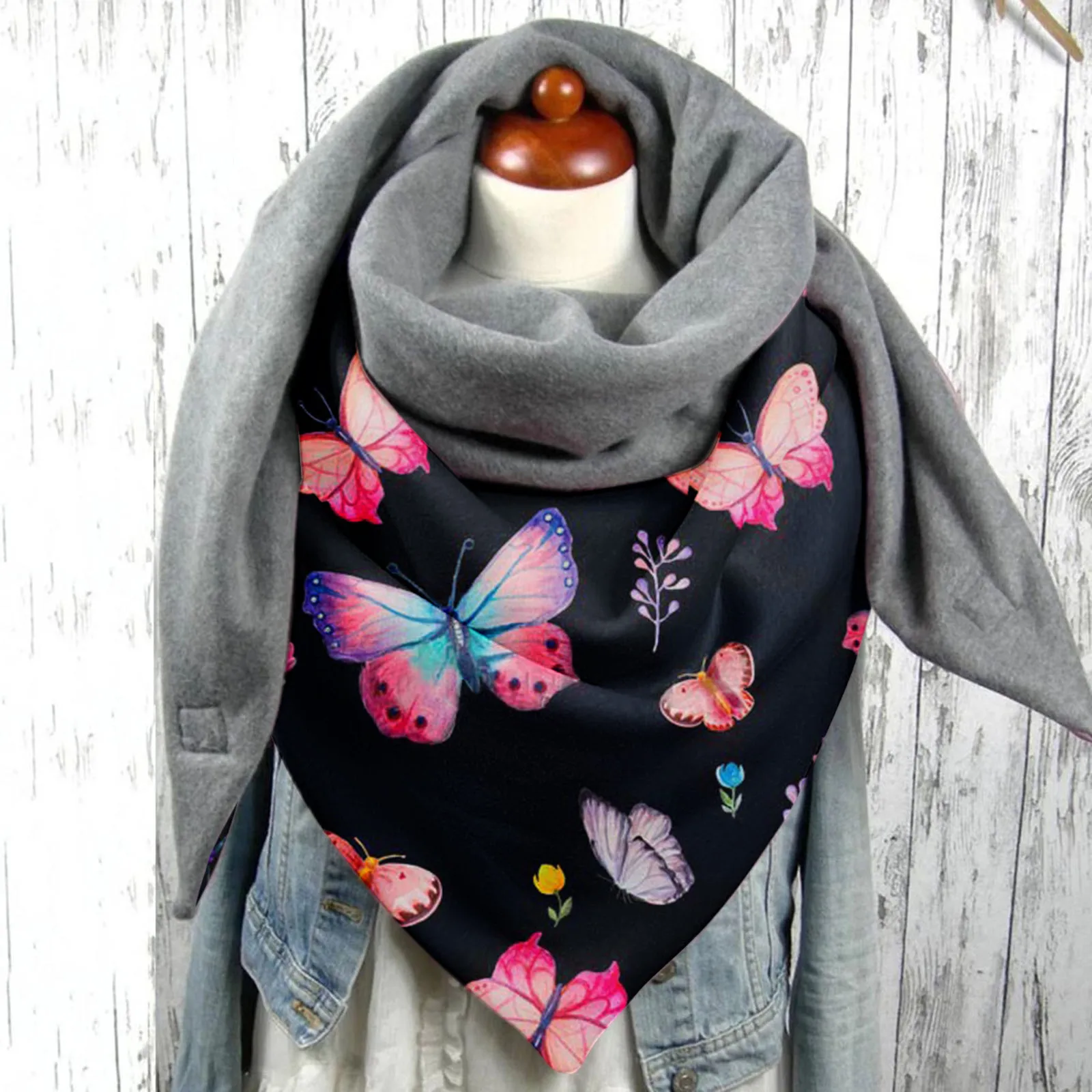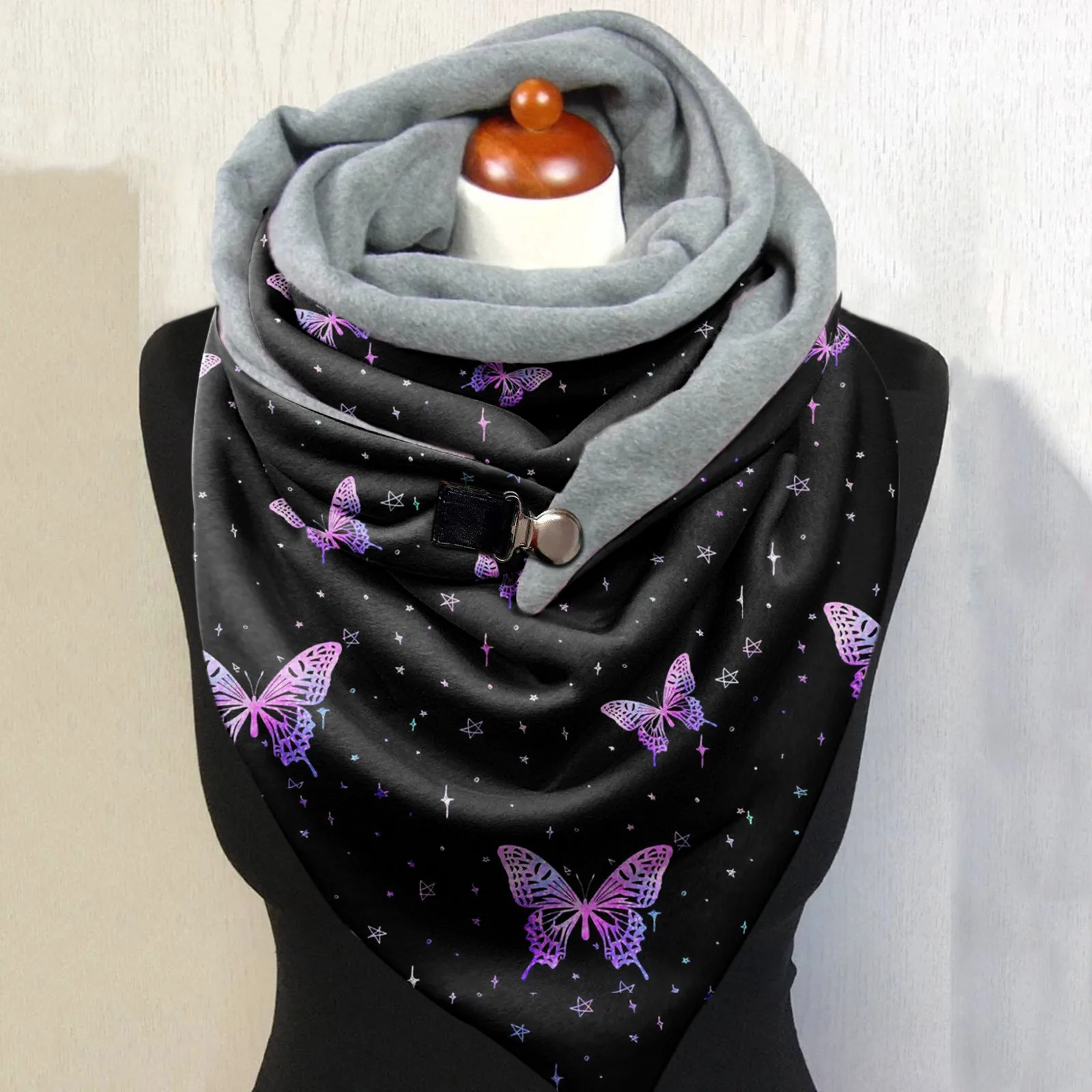 Женский мягкий кашемировый Шарф, модный Повседневный теплый Шарф с принтом бабочек на пуговицах, новинка зимы 2021