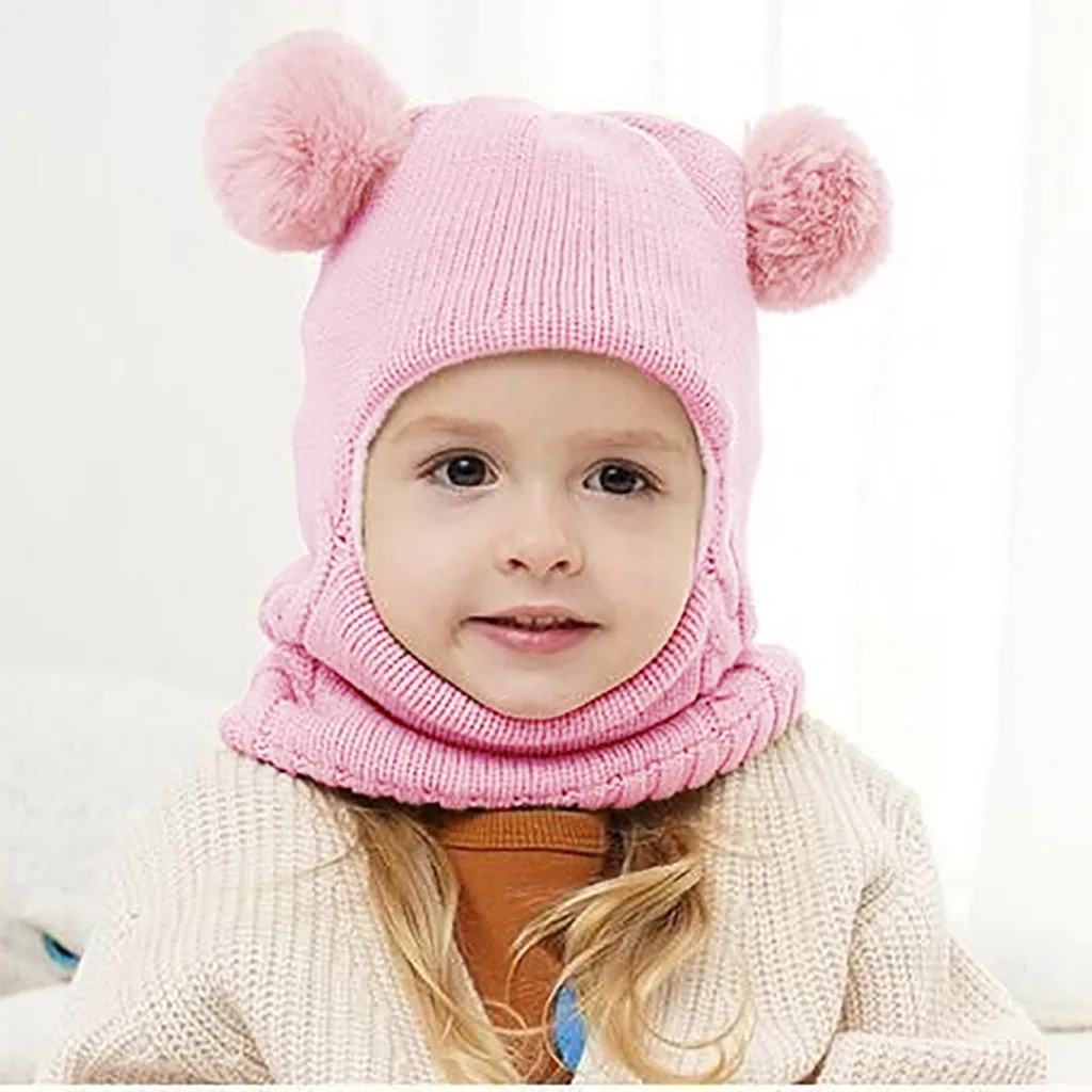 Детский шарф с капюшоном для маленьких мальчиков и девочек, шапка, зимняя теплая вязаная шапка с клапаном, шарф, милая хлопковая мягкая однотонная зимняя шапка для детей, серая, винная