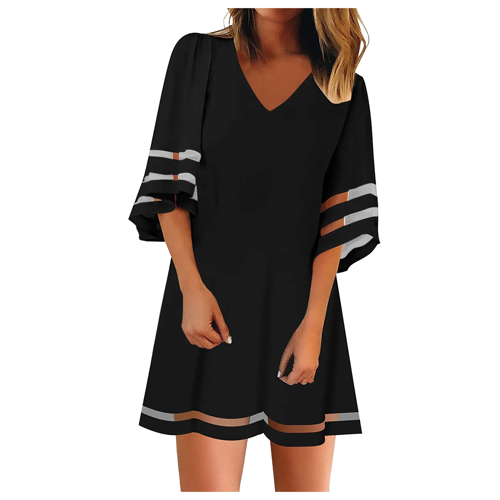 Женское винтажное платье с расклешенным рукавом, белое ажурное свободное платье-трапеция, праздничные платья, летние свободные платья-блузки с расклешенным рукавом, 34