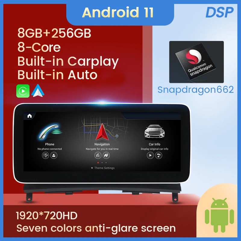 Android11 8 ядер 8G RAM + 258G ROM,IPS 1920*720 Blu-Ray антибликовый экран, встроенный wireles Carplay + проводной Авто, DSP, поддержка 4G Lte,WIFI