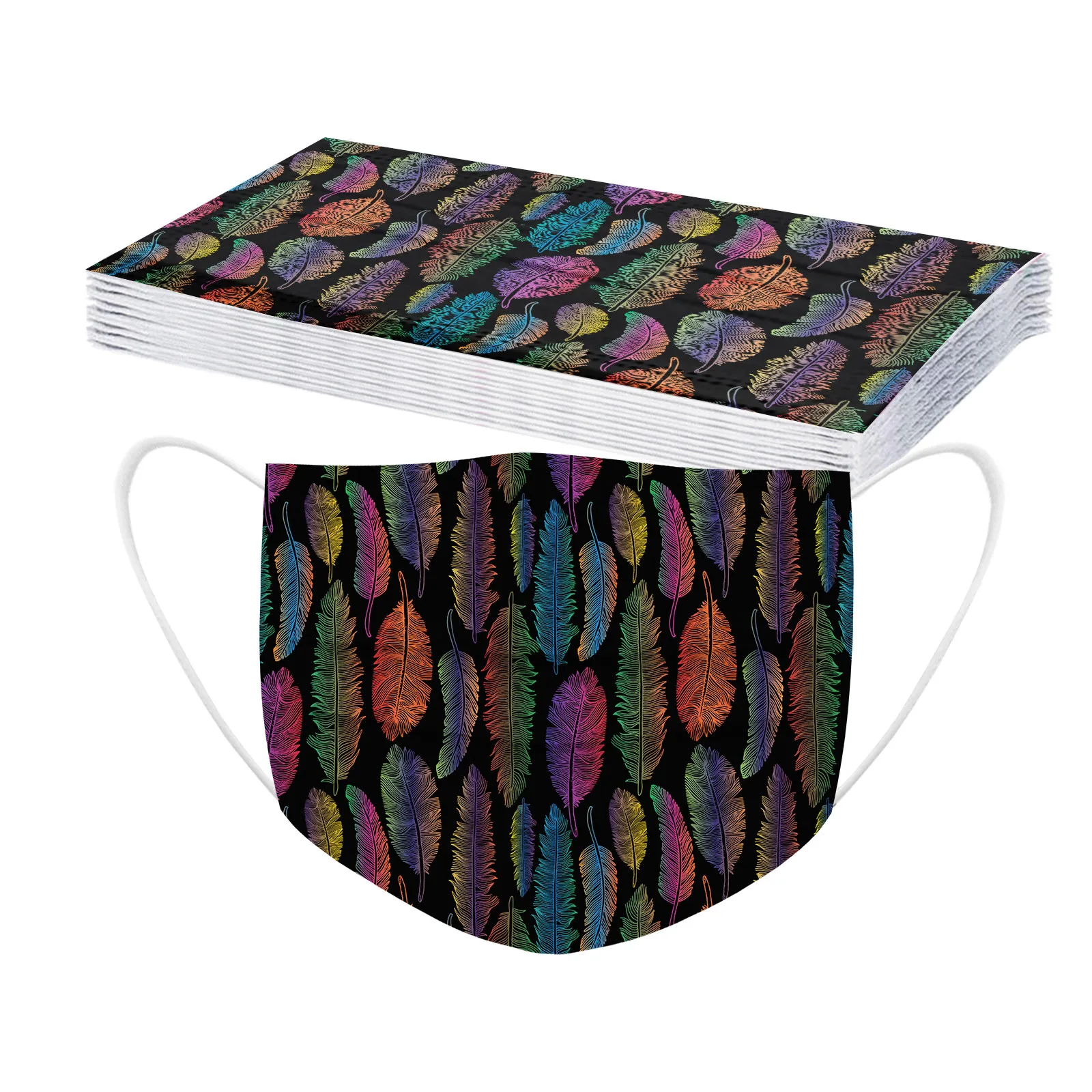 10 шт., одноразовые маски для лица для взрослых, с принтом перьев