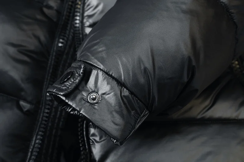Мужская теплая куртка, блестящее зимнее пальто, капюшон на белом ут...