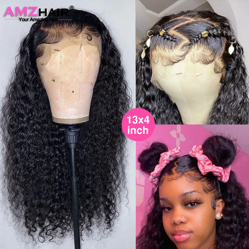 Парик бразильский кудрявый на сетке спереди 13x4, прозрачные передние парики из человеческих волос, предварительно выщипанные парики на сетке для чернокожих женщин