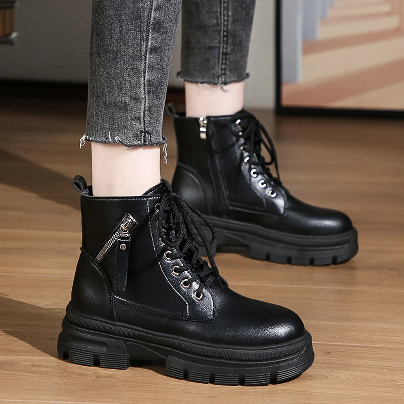 Женские полуботинки, увеличивающие рост, женские бархатные зимние женские ботинки, Теплые повседневные женские высокие ботинки с круглым носком