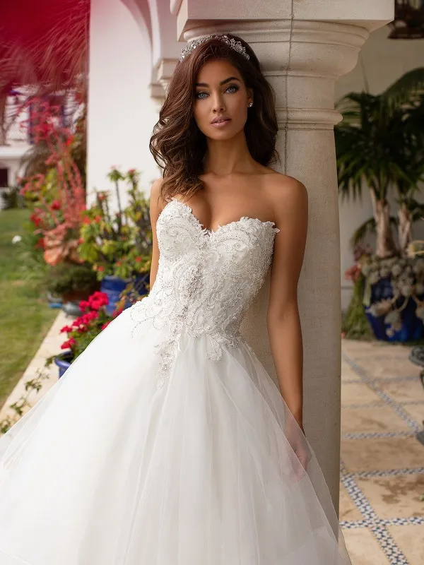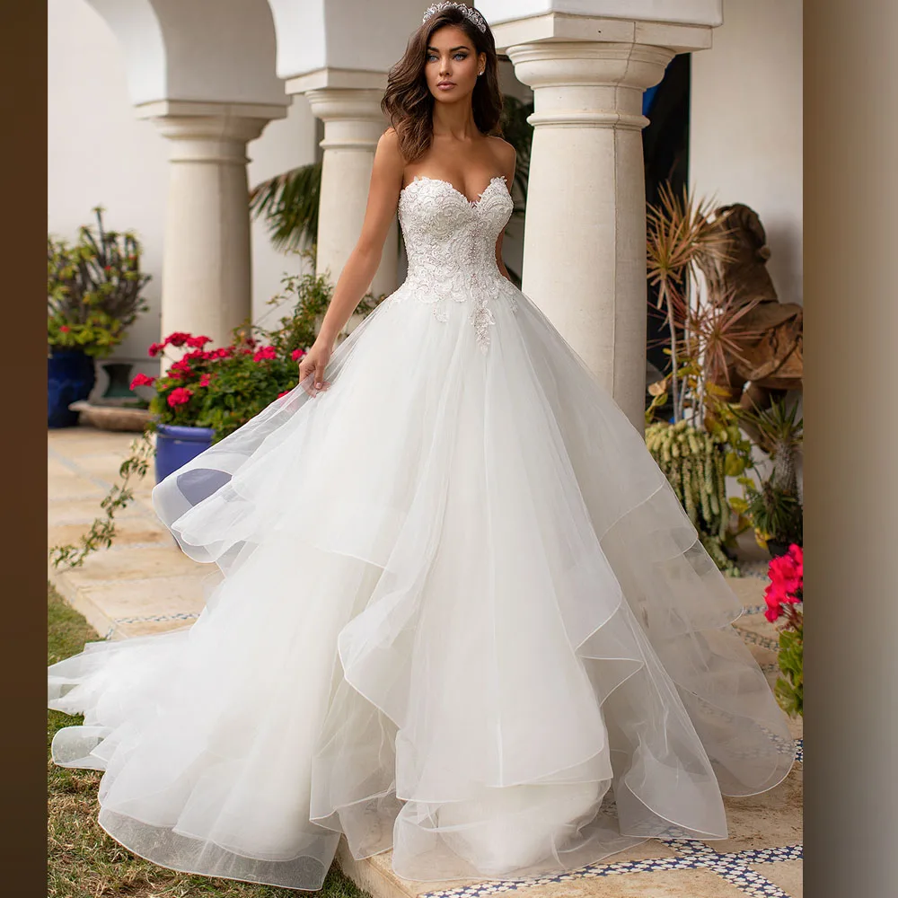 Женское свадебное платье принцессы, бальное платье цвета слоновой кости с кружевной аппликацией и сердечком, официальное бальное платье со шлейфом, 2021