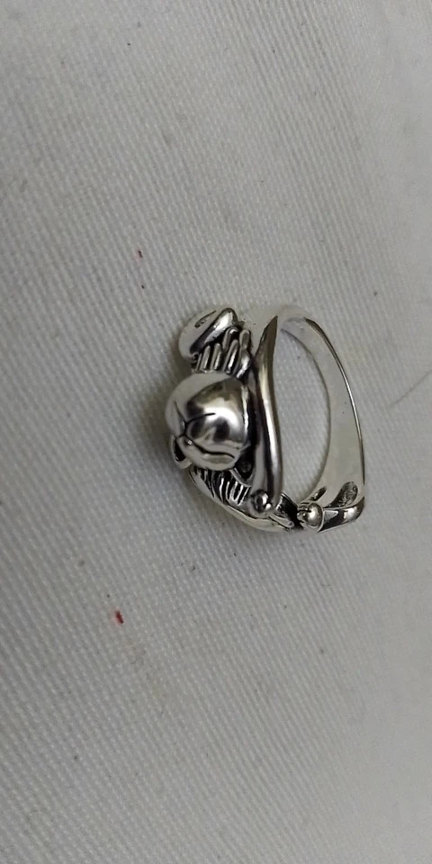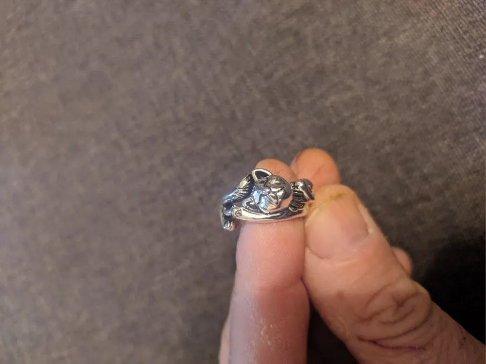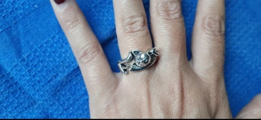 Красивое кольцо с изменяемым размером. Четкая детализация. выполнено под серебро с чернением. Выглядит атмосферно. На размер пальчика 8-большевато. Доставили в течении месяца. Упаковано в почтовом пакете и ЗИП пакете.