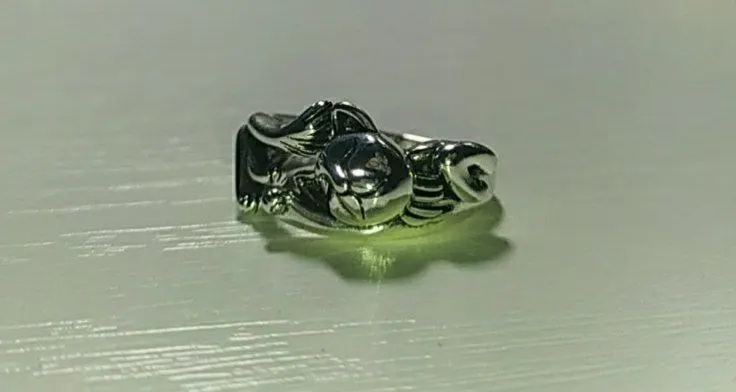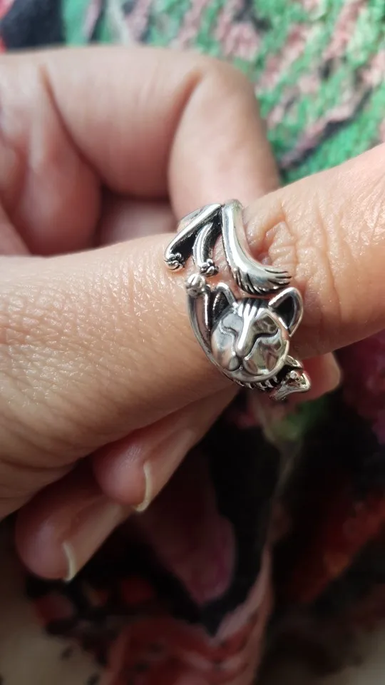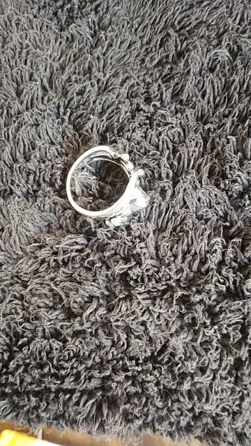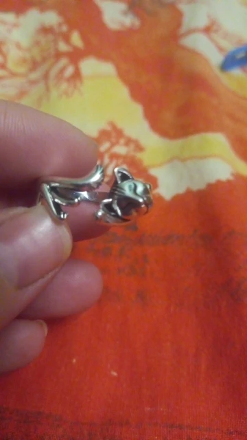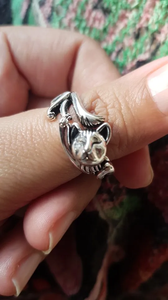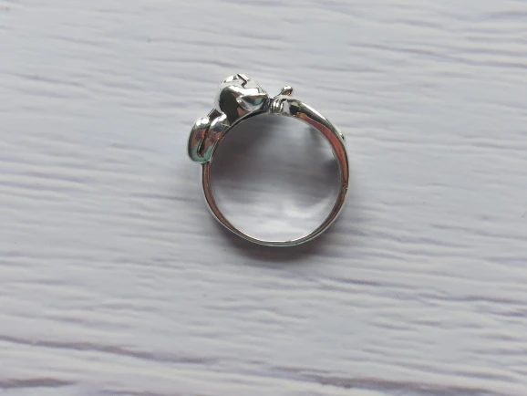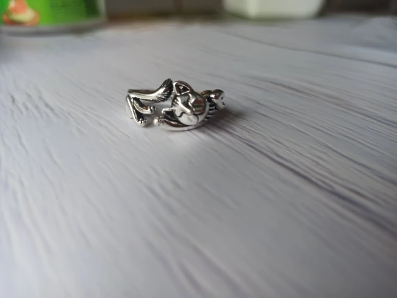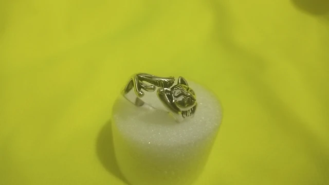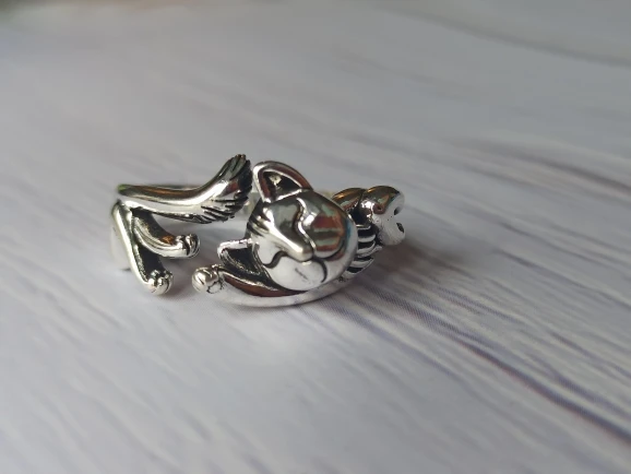 Кот не такой детальный и аккуратный, как на картинке. Серебряной пробы не увидела. Но так как кольцо досталось мне за цент и монетки, то я и не против такой бижутерии.