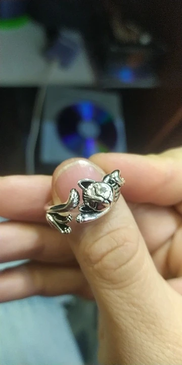 Серебристое колечко в виде котика который закрутился вокруг пальца я купил своей старшей дочери, кольцо безразмерное так как имеет разрез, качество кольца на высоте ⭐⭐⭐⭐⭐,,, продавцу ставлю 5 ⭐⭐⭐⭐⭐звёзд,,, упаковка на ⭐⭐⭐⭐⭐,,, доставка вовремя , рекомендую,,,,,,,,