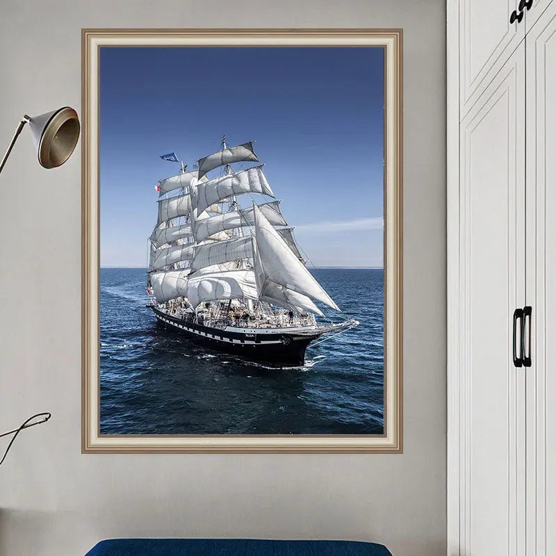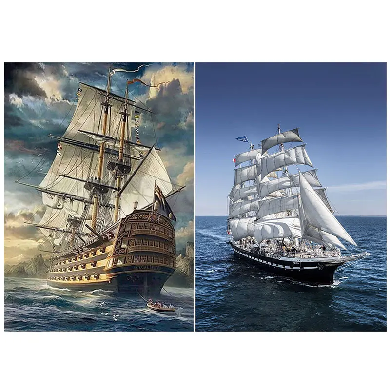 Набор для алмазной вышивки QIQING, картина из квадратныхкруглых страз сделай сам, вышивка крестиком, морской пейзаж, парусное судно, мозаика для домашнего декора, подарок