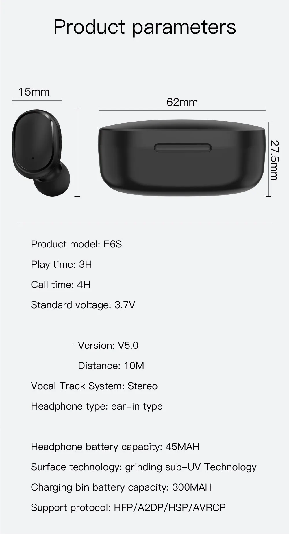 TWS-стереонаушники E6S с поддержкой Bluetooth, Hi-Fi, IPX4