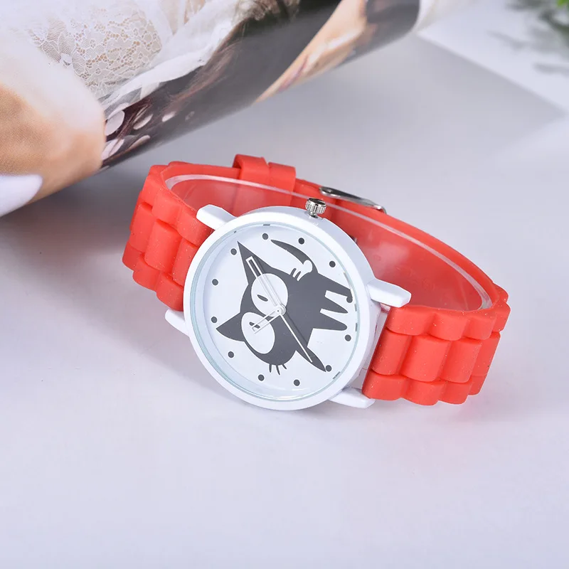 Женские часы с мультяшным котом, новый дизайн, силиконовый бренд, Спортивные кварцевые наручные часы, Модные Цветные часы, Montre Femme, бесплатная доставка