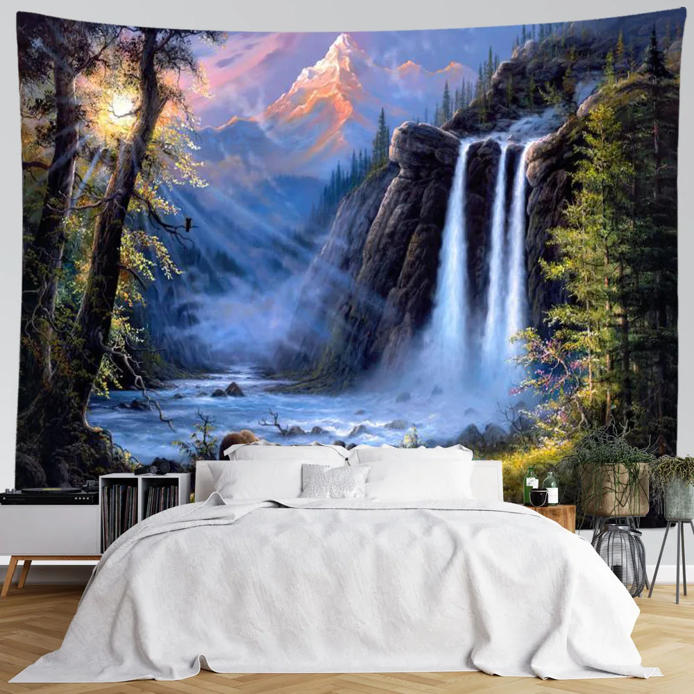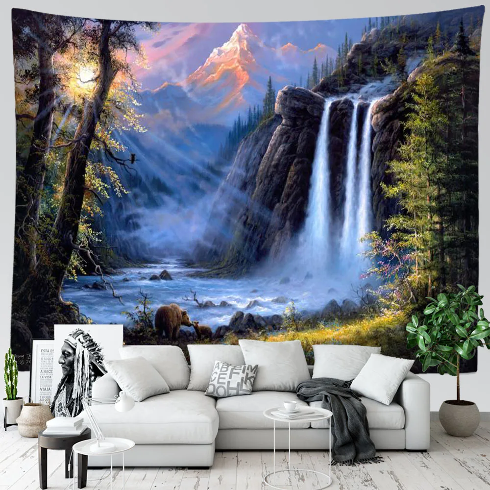 SepYue гобелен в стиле хиппи, украшение для комнаты в стиле бохо, Настенный декор, лесной пейзаж, водопад, эстетический Декор для комнаты, домашний настенный гобелен