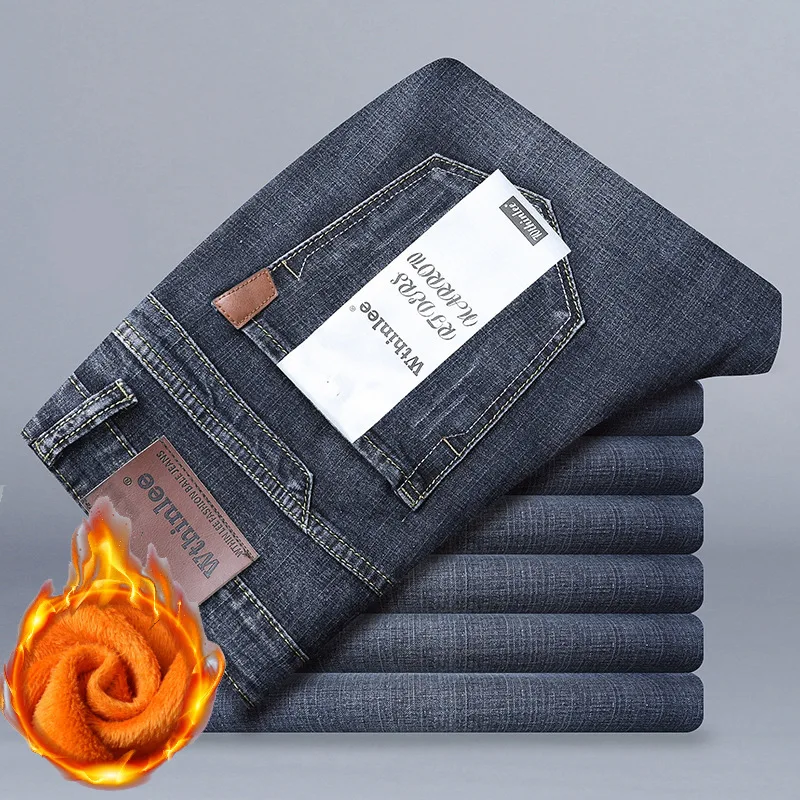 Мягкие и удобные мужские бархатные толстые джинсы высококачественные повседневные Прямые джинсовые брюки мужские брендовые Стрейчевые теплые брюки