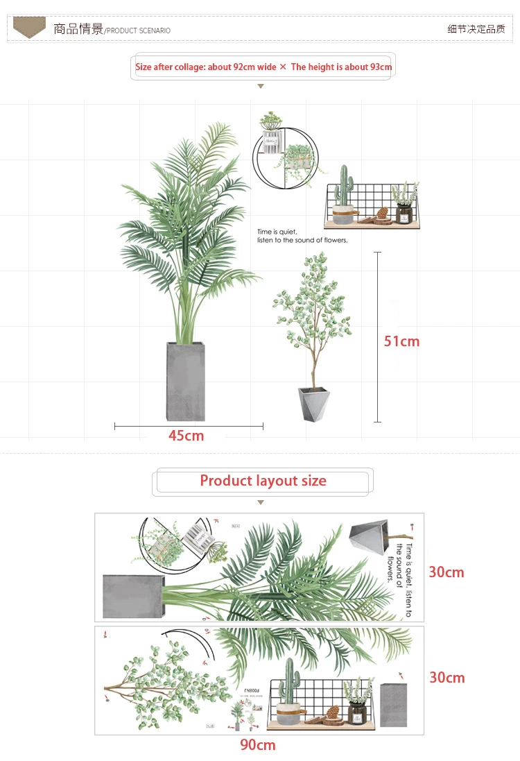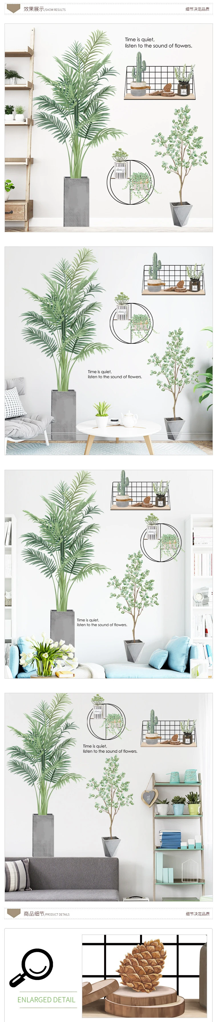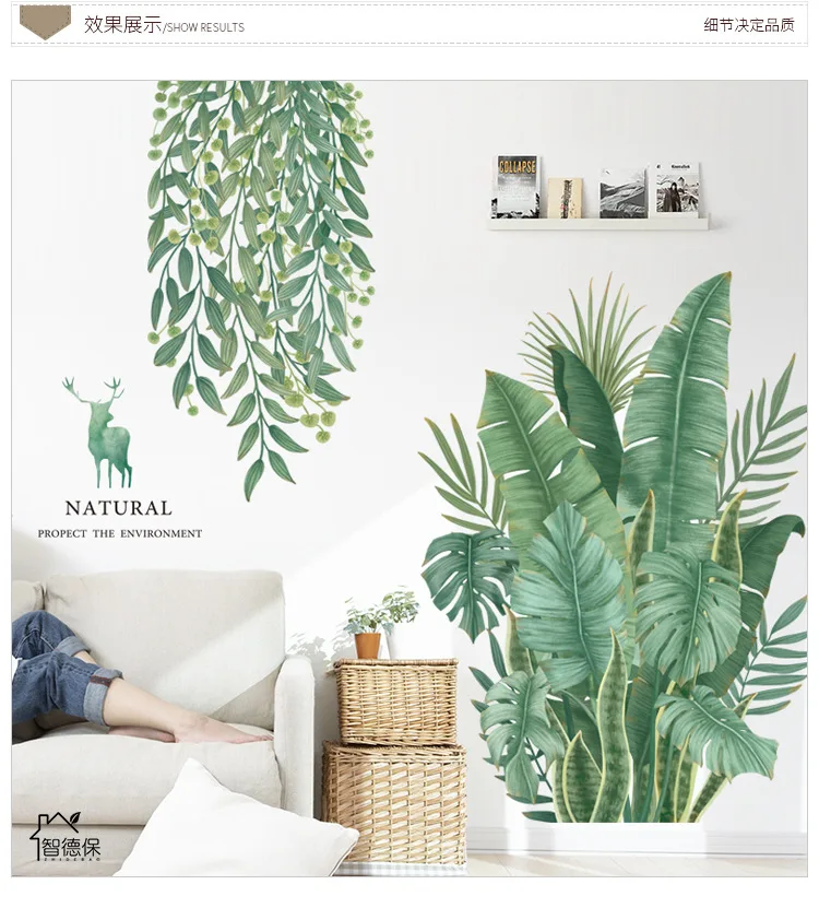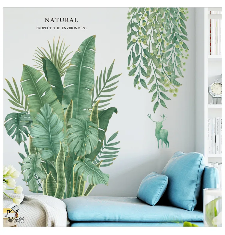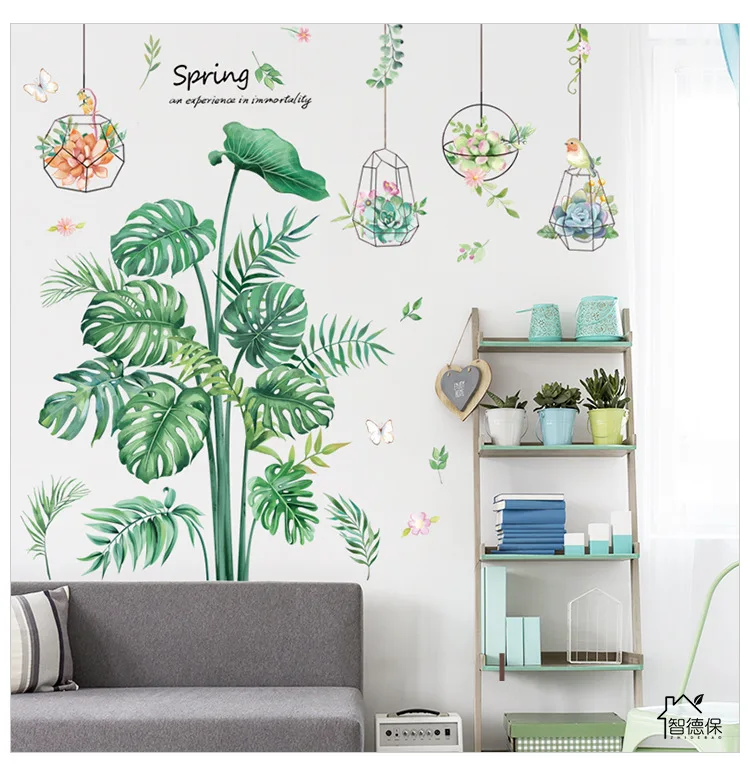 Зеленые растения листья цветочный горшок маленькие свежие наклейки спальня диван фон стены пасторальные растения обои наклейки на стену самоклеющиеся