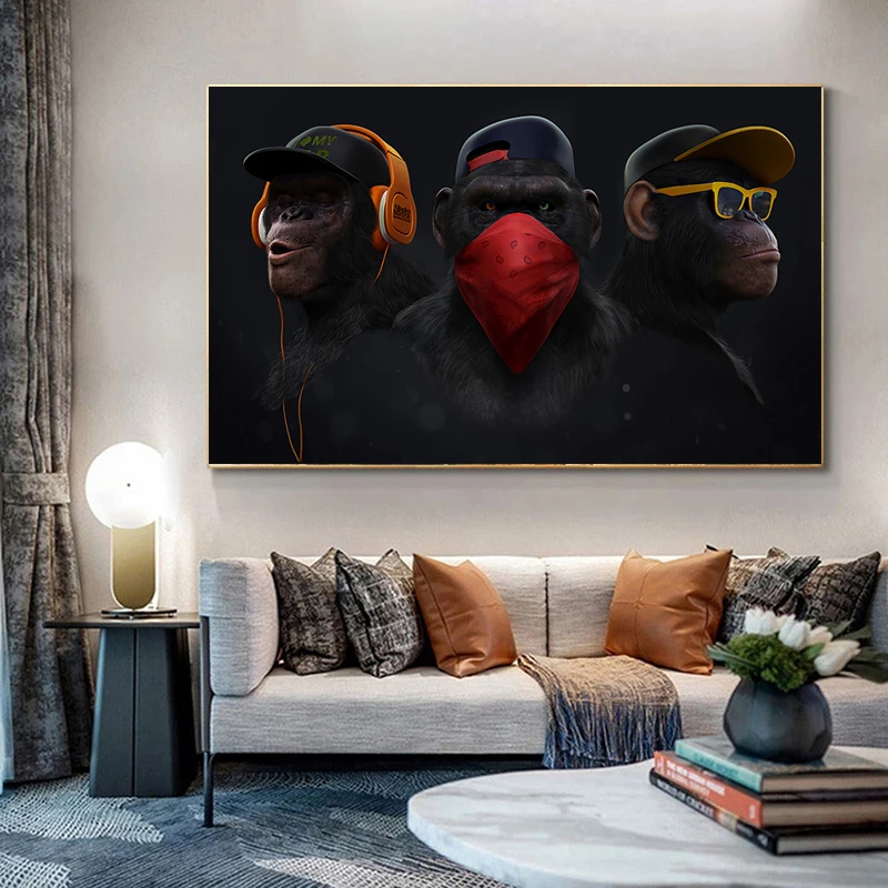 Постеры и принты Бэнкси на холсте, с забавными обезьянами, граффити...