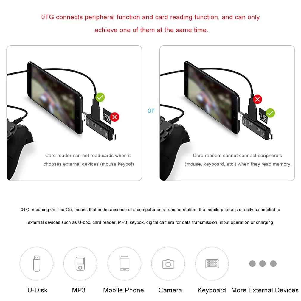 Функция продукта: USB2.0 male + MICRO male + Type-C male, быстрая считывание карт памяти TF,