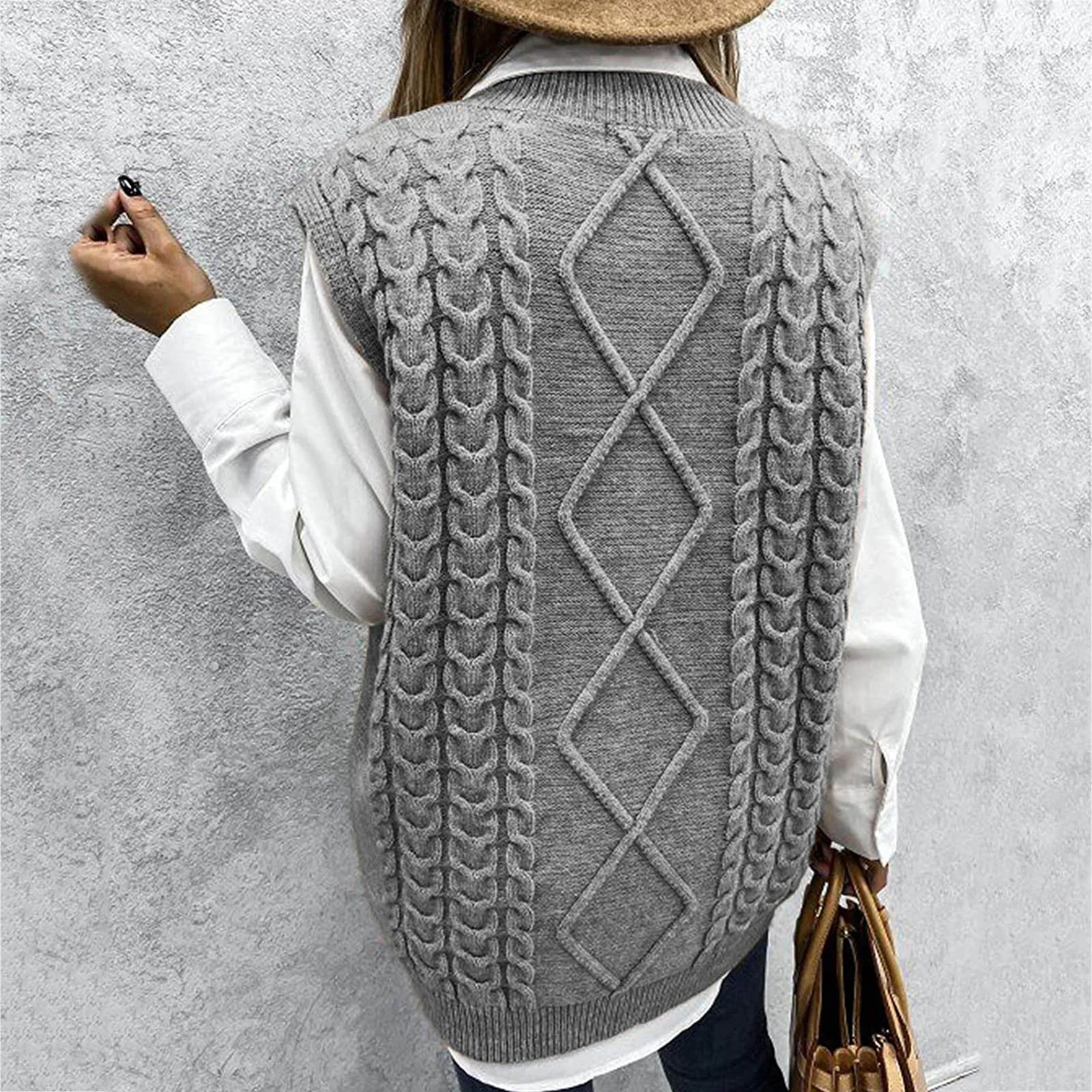 Свитер женский осенне-зимний, вязаный кардиган в стиле преппи, майка без рукавов с V-образным вырезом, винтажный свитер, жилет, уличная одежда