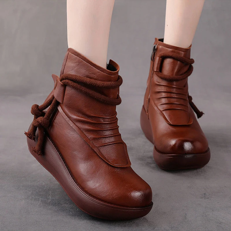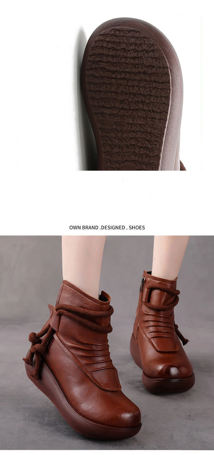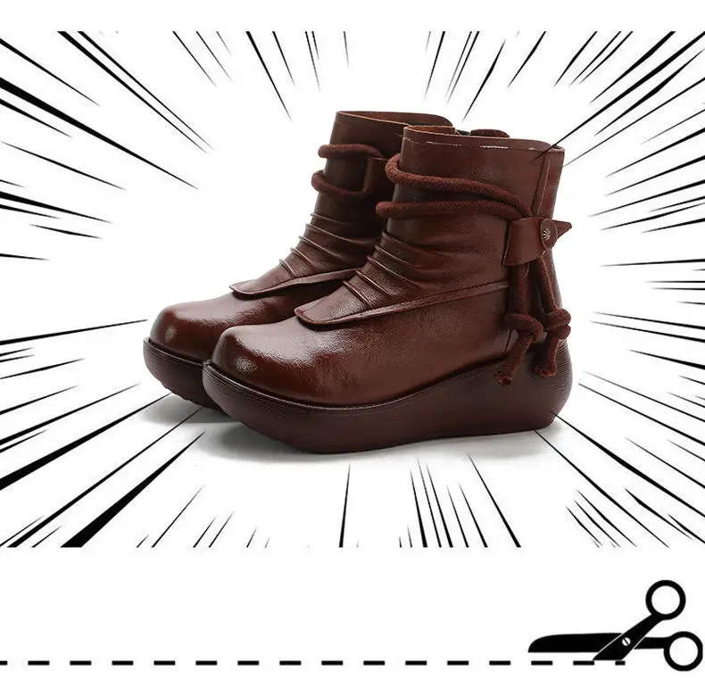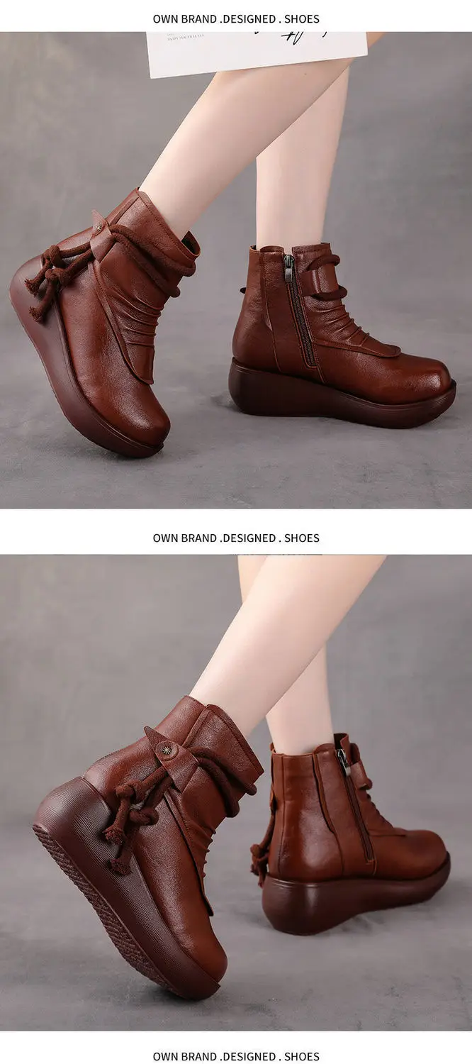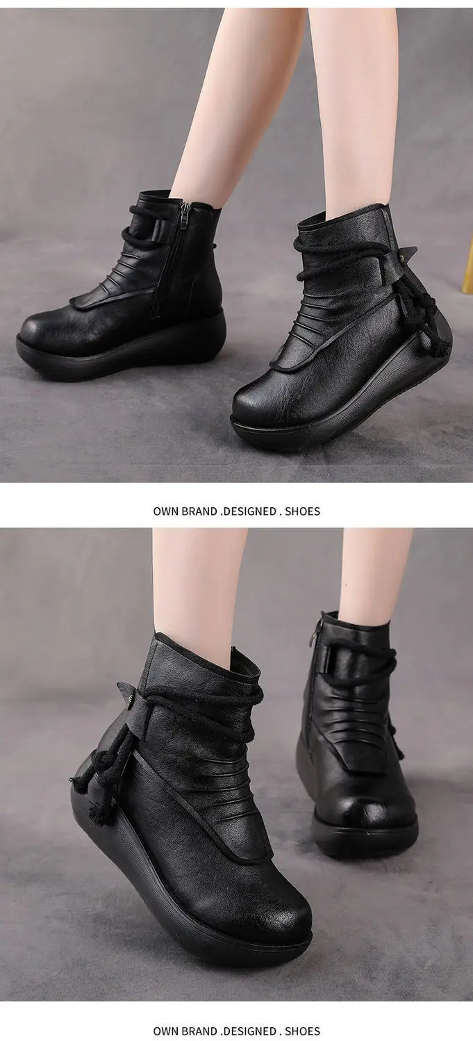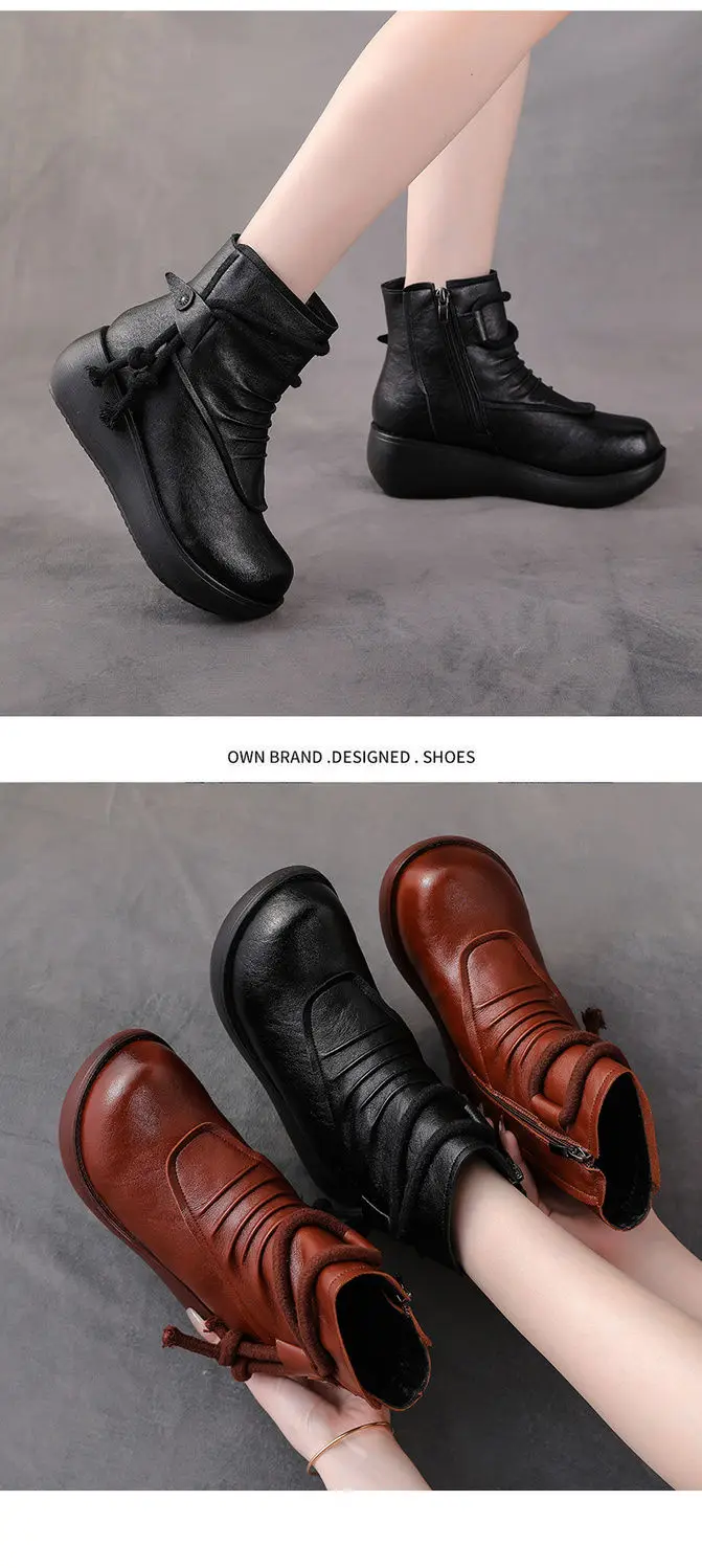 OUKAHUI Осенние Теплые винтажные ботильоны из натуральной кожи для ...