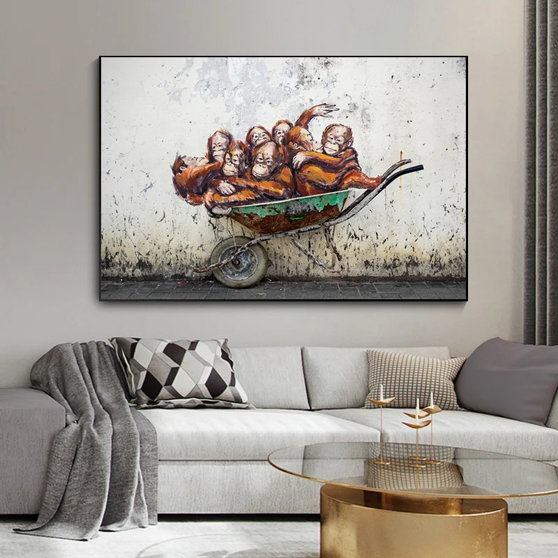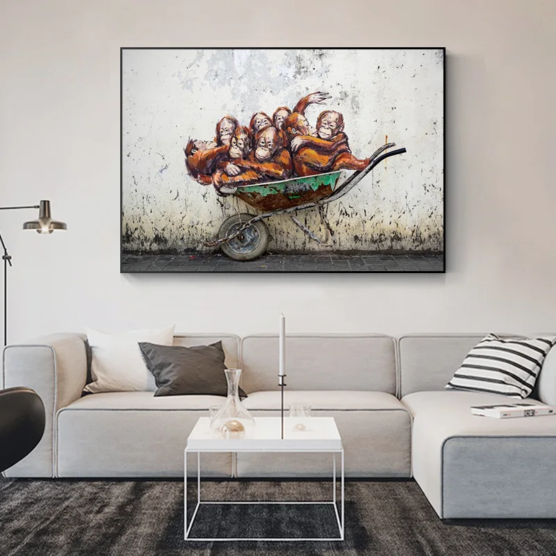 Граффити Бэнкси Холст постер Orangutans тачка уличное искусство обезьяна холст живопись стена классический стиль Холст принты