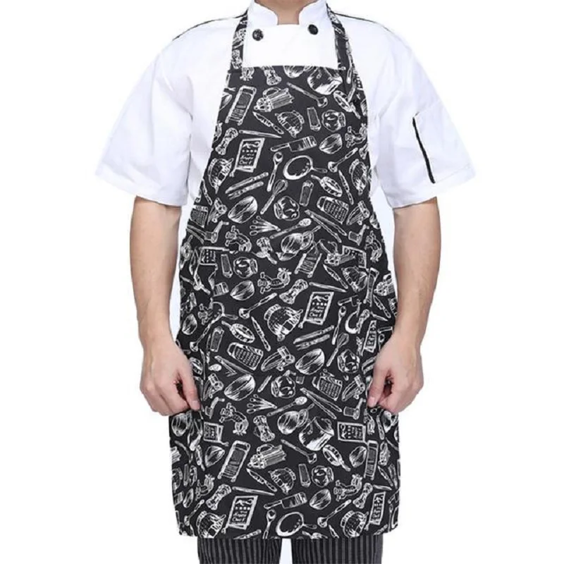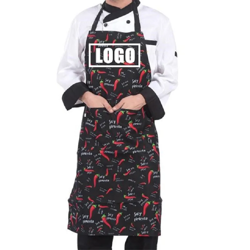 Кухонный Фартук для мужчин, регулируемая полоса с логотипом, длина средней длины, для шеф-повара, отеля, ресторана, официанта, с двумя карманами, дизайн с логотипом