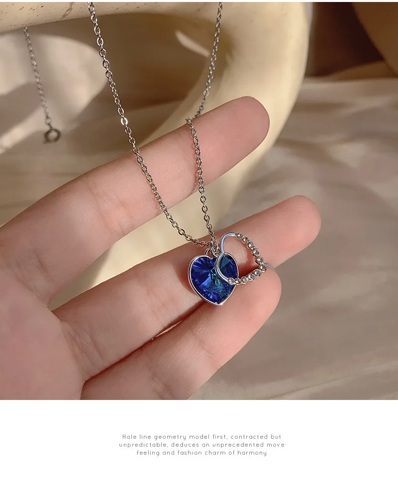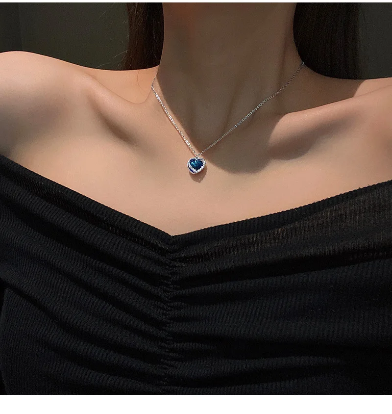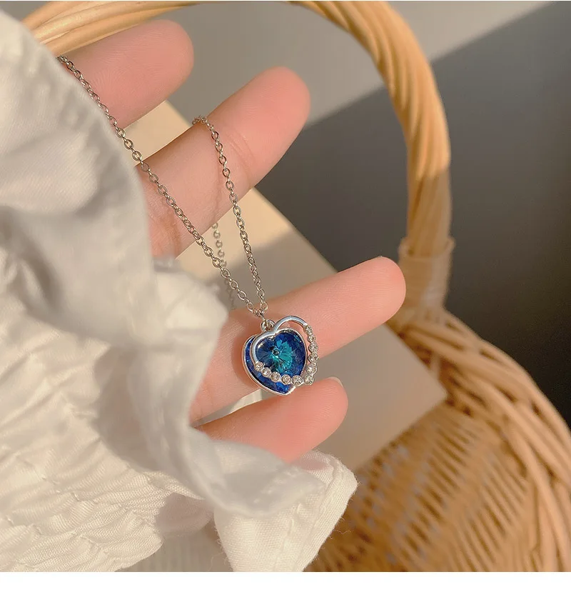 Дизайнерское ожерелье с подвеской в виде голубого сердца океана для женщин, корейские милые ювелирные изделия, модные аксессуары для девушек, цепочка на шею