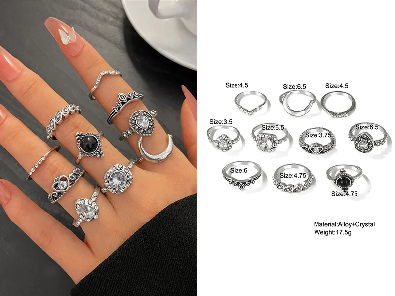 Набор Колец серебристого цвета в стиле ретро для женщин и девушек, ...