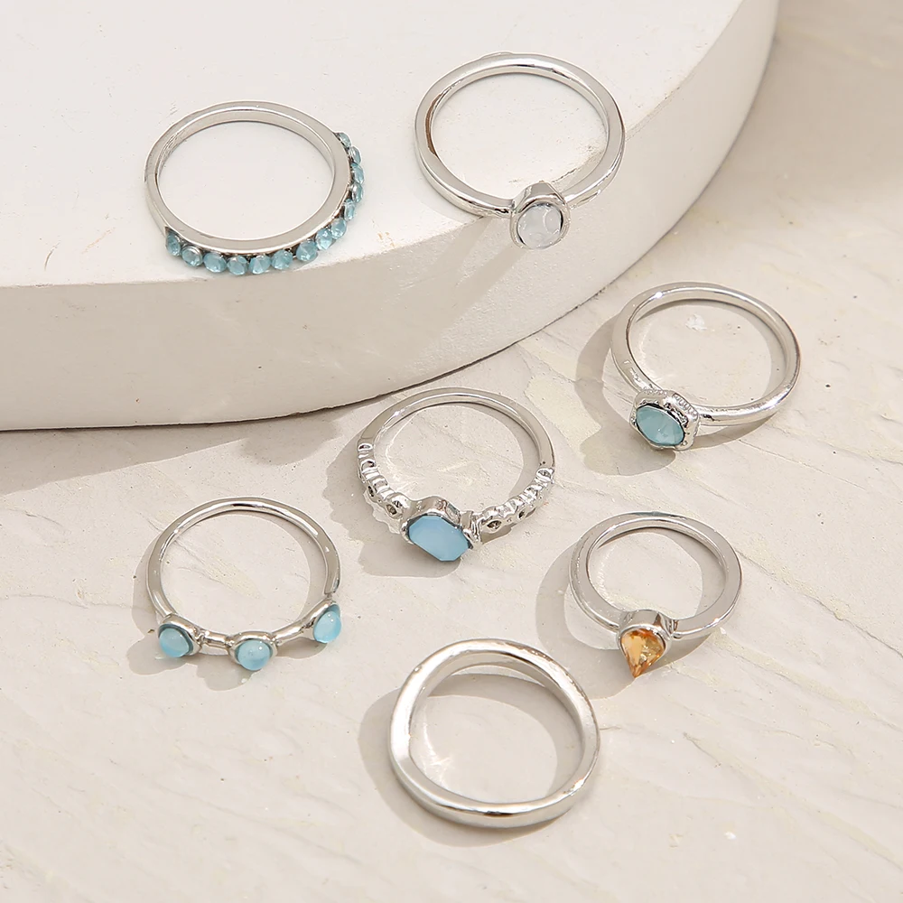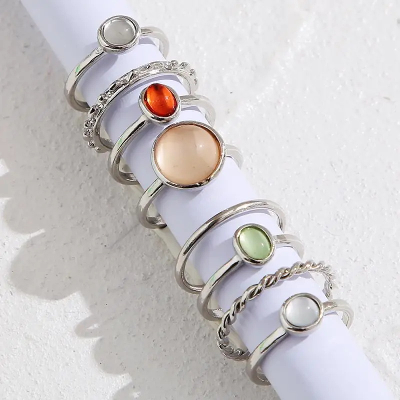 7 шт. набор красочных колец с камнем для женщин и девушек 2021 модн...