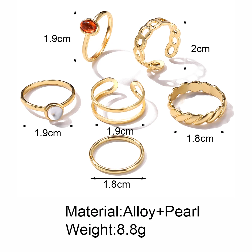 Новинка, Корея, 8 шт.компл., винтажный красочный камень, металлическая цепь, модные геометрические Популярные Кольца для женщин и девушек, ювелирные изделия