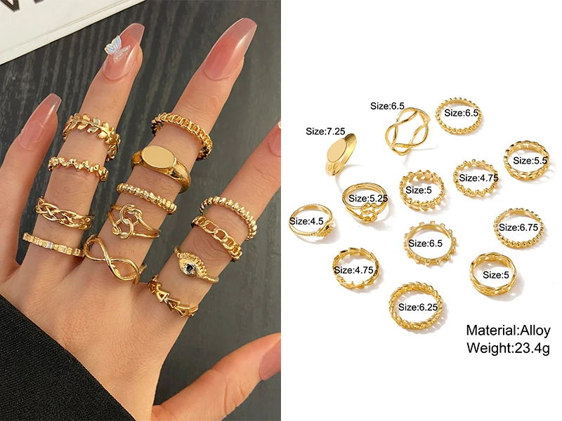 Набор колец в стиле бохо для женщин, модные геометрические перстни ...
