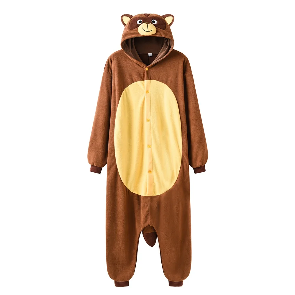 Пижама коричневая для пар с енотом мультяшный Комбинезон кигуруми в виде животных на Хэллоуин Забавный милый наряд зимняя Пижама домашний костюм