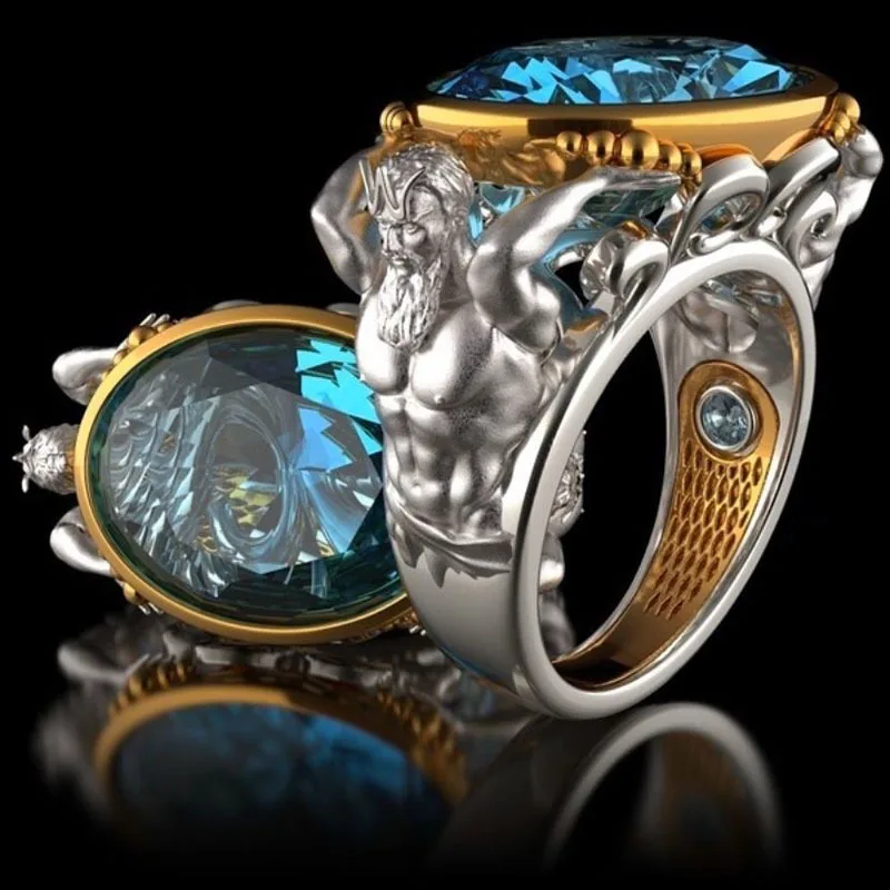 Креативная резьба, статуя королева моря, понайдон, статуя, кольцо, индивидуальность, мужское кольцо в стиле хип-хоп, миф, модное ювелирное изделие, подарок