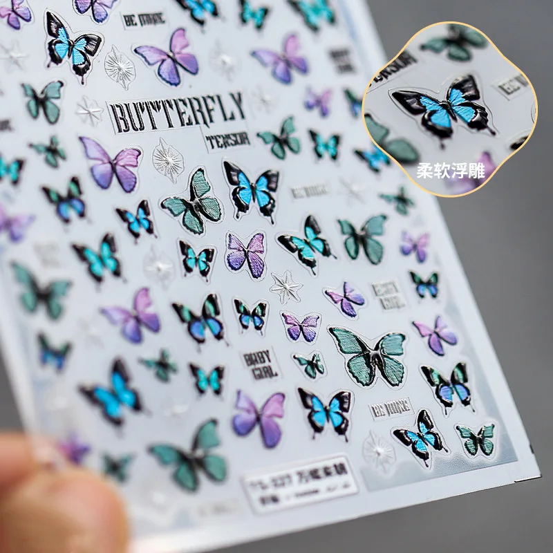 Наклейки для ногтей 5D, ультратонкие, с бабочками, стикер для рукод...